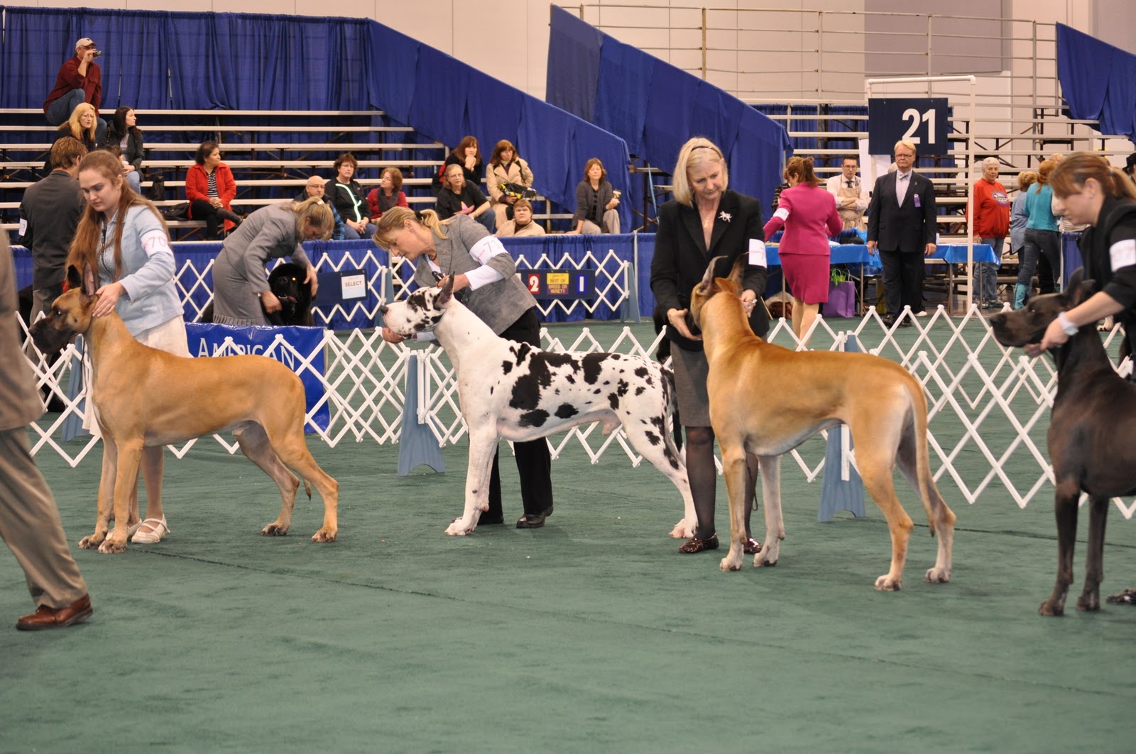 So after the working dog specialty and group were complete, we moved over to another ring for the first of the two Dane specialties. The second was to be held the following night (Thursdsay) after Best in Show.